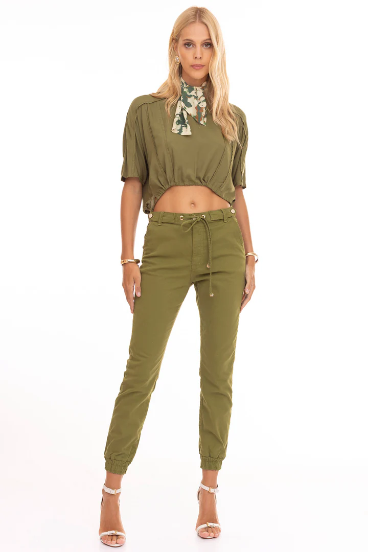 A Calça Jogger com Martingale Seu design moderno conta com punhos ajustados no tornozelo que valorizam a silhueta, além do martingale